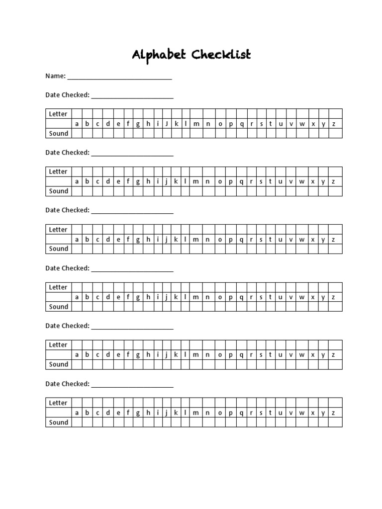 Alphabet Checklist PDF
