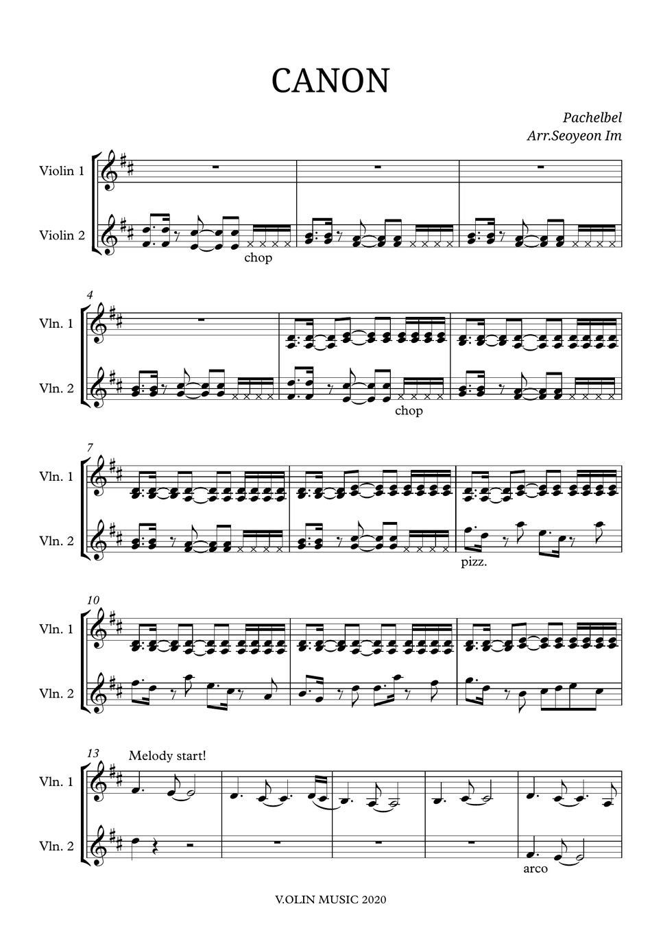 Phahelbel Canon For 2 Violins (Pop Version.) Sheets