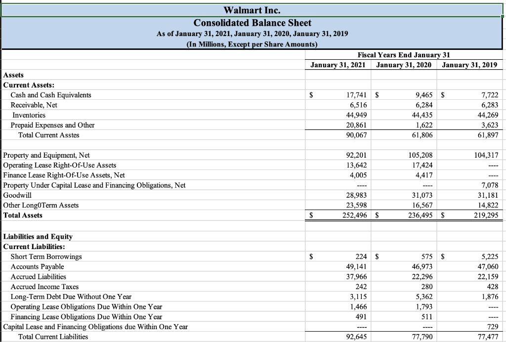 Solved Walmart Inc Balance sheet(s) Walmart Inc