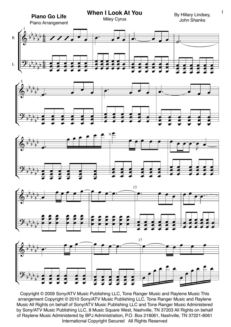 Miley Cyrus When I Look At You 楽譜 by Piano Go Life