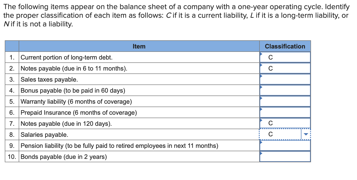 Solved The following items appear on the balance sheet of a