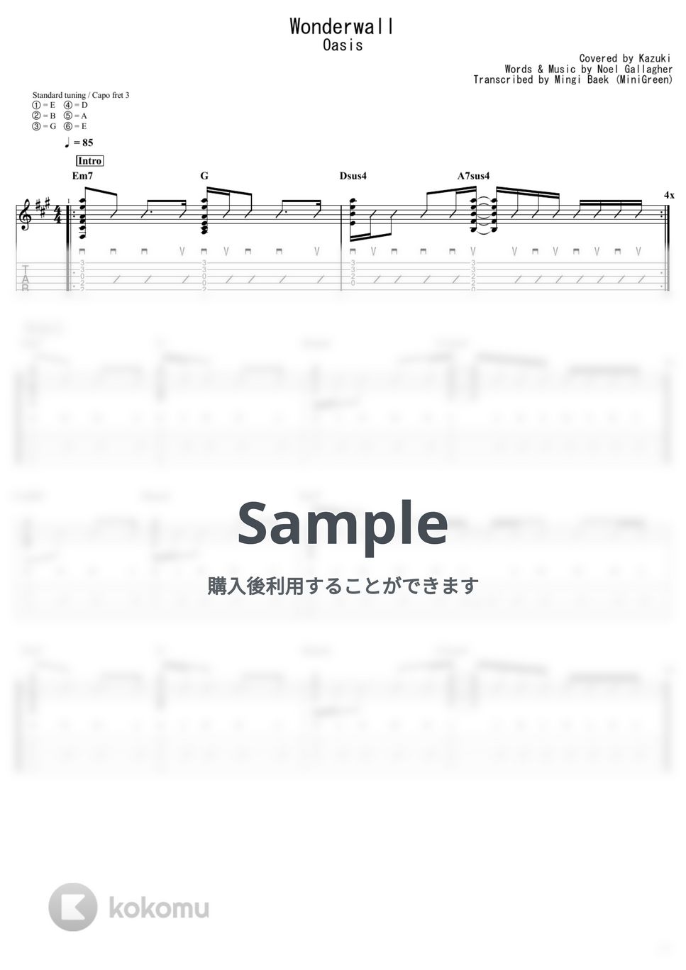 Oasis Wonderwall 楽譜 by Kazuki
